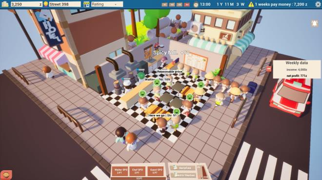 The gameplay of this game involves running an ordinary noodle restaurant. You will play the role of the restaurant’s operator, responsible for all aspects of the restaurant’s operation and management, including recruiting staff, arranging tables, promoting the business, setting noodle prices, and more